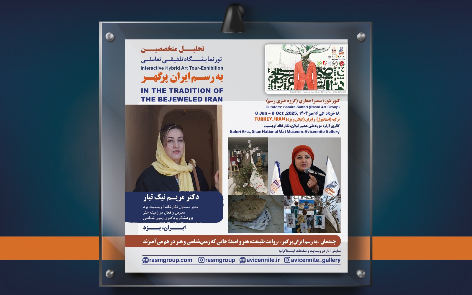 تورنمایشگاه با اینستالیشن تلفیقی و تعاملی «به رسم ایران پرگهر» به کیوریتوری سمیرا صفاری، مدرس دانشگاه، پژوهشگر و مدیرمسئول گروه هنری رسم، از نیمه نخست سال تا 16 مهر ۱۴۰۴ (۲۰۲۵) با رویکردی بین‌المللی و حرفه‌ای برگزار شد. این رویداد هنری با حضور ۴۵ هنرمند ایرانی از اقصی نقاط جهان و ارائه بیش از ۵۰ اثر، به بررسی جایگاه هنر در همدلی ملی و التیام جوامع، پلی میان خلاقیت هنری، همبستگی اجتماعی و بازآفرینی امید پس از بحران‌ها پرداخت و تجربه‌ای تازه از تلفیق هنر، ادبیات، جامعشناسی، روانشناسی، فلسفه و … را به مخاطبان ارائه داد. مجموعه آثار هنرمندان از کشورهای مختلف همچون ایران، آلمان، قبرس، اسپانیا، امارات متحده عربی و آمریکا به صورت حضوری و آنلاین در موزه‌ها و گالری‌ها استانبول، گیلان و یزد، نیز پلتفرم‌های متنوع به نمایش درآمد.